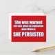 This card, to me, represents the power of the feminine. The refusal to be a good girl, "she was warned", the demoralising attempt to belittle, "she was given an explanation" and the defiant strength to forge ahead in spite of male opposition, "she persisted".