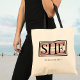 Tote bag featuring the pronoun SHE with colours of the transgender flag. Perfect gift for transwomen or feminine identified persons.