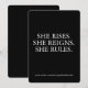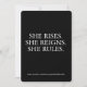 This bold, custom card featuring the powerful words “SHE RISES. SHE REIGNS. SHE RULES.” is made to celebrate fierce, unstoppable women. Whether you're gifting it to your best friend, boss babe, sister, or yourself—this card delivers a confident message of women empowerment with a sassy flair. Perfect for graduations, promotions, birthdays, or just because—remind her of the queen she is!