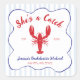 Add a nautical touch to your celebration with these “She’s a Catch” lobster bachelorette party stickers. Designed with a bold red lobster illustration, nautical red and blue accents, and a light blue and white striped background, these stickers bring playful seaside charm to your event. A hand-drawn wavy frame and handwritten-style font complete the look, making them stylish and fun.
