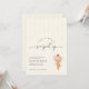 She’s been scooped up, and it’s time to celebrate. This sweet bridal shower invitation sets the tone for a joyful gathering filled with smiles, treats, and love. The soft striped background and elegant lettering give the design a light, modern feel, while the ice cream detail adds a playful touch that feels perfect for a summer celebration.
