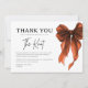 The minimalist orange-and-white design reflects today’s most popular bow-themed and modern bridal aesthetics, making it easy to coordinate with your shower décor, invitations, signage, and tableware. Thoughtfully styled and easy to personalize, this thank you card feels refined, heartfelt, and effortlessly elegant.