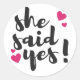 She Said Yes! Engagement Celebration – Romantic Classic Round Sticker