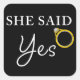 She Said YES Funny Men's Engagement Fiancée Quote Square Sticker