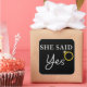 SHE SAID YES – Cute men's engagement quote. Celebrate being recently engaged to your fiancée. Great for couples to celebrate love, proposal, and commitment to be married.