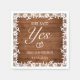 She Said Yes wedding napkin with your names and date. Rustic style with wood planks background and white lace decor. More items are available in this style in our store. You can edit the design further, change colours, fonts and add extra text by clicking "customise further" link.
