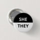 She/They Pronoun Black & White Badge