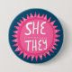 SHE/THEY Pronouns Pink Sun Pride Handlettered 7.5 Cm Round Badge
