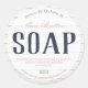 This product label for handmade shea butter soap features navy blue and blush text on white wood. It can be used to add that finishing touch to gifts for friends and family, or it can be used to brand your handmade products for sale.