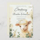 Celebrate the special occasion of your son's christening with our delightful invitation cards, featuring an endearing illustration of a sheep surrounded by delicate green flowers. The charming sheep adds a touch of whimsy, while the soft green floral accents evoke a sense of serenity and nature's beauty. The elegant lettering enhances the overall design, adding a touch of sophistication and grace. Each card is thoughtfully crafted to make a memorable first impression on your guests. Ideal for announcing this significant milestone, our christening invitations beautifully combine playful charm with refined elegance in a harmonious design.