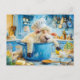 Sheep as cook in pot in kitchen holiday postcard