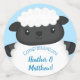 Adorable sheep baby shower design is great for a new baby boy on the way in blue! Great for a farm animals or petting zoo theme too!