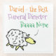 Drinks Coaster for a Funeral Director. Funny cartoon of a sheep on the top of a hill. The sheep says "Best Baaa None". Design repeats on both sides