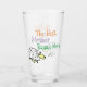 Glass for the best Mother. Funny cartoon of a sheep on the top of a hill. The sheep says "Best Mother Baaa None". Design repeats on both sides. Beer glass for Mum on Mothers Day or Mum's Birthday perhaps.