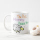 Mug for the best Mummy. Funny cartoon of a sheep on the top of a hill. The sheep says "Best Mummy Baaa None". Design repeats on both sides