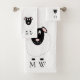 Bath towel set, consisting of a face cloth, hand towel and bath towel with a sheep design. You can have this bath towel set in any colour by changing the background just click the edit this design button and choose the colour of your choice. You can also customise the text to read whatever you want. Should you require any help with customising then contact us through the message link on this page. Sheep design bathroom towel set