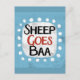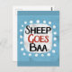 "Sheep Goes Baa" is a fun text design with a white accent shape surrounded by white whimsical textured dots.