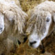 Two beautiful Cotswold sheep captured photographically in a funny and humourous moment talking to each other. Cotswold sheep originate from the Cotswolds in England and are bred for their wool and meat. They have long fleeces with an almost golden tint to it.