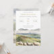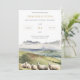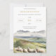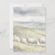 This invitation features an original digital watercolor illustration of herd of highland sheep with a tranquil mountain background.