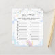 Sheet game "Baby Item ABC" for baby shower Decorated with an adorable unicorn with wings, a garland and a castle.