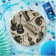 All the members of the band have come out to play on this fun music themed design that features a variety of instruments on a vintage sheet music, collage background. The trendy black and gold colour palette makes an eye-catching paper plate. The instruments featured are: acoustic and electric guitar, saxophone, clarinet, trombone, trumpet, French horn, flute, violin, cello, and drums. Search ID481 to see other colour choices and products with this pattern.