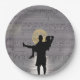 Paper party plates with sheet music from Beethoven and a couple in silhouette against a full moon.
