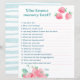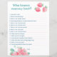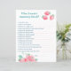 Sheet of baby shower game paper featuring cute strawberries in a cup in watercolor sketch style.