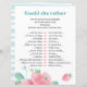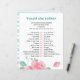 Sheet of baby shower game paper featuring cute strawberries in a cup in watercolor sketch style.