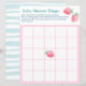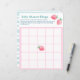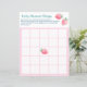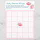 Sheet of baby shower game paper featuring cute strawberries in a cup in watercolor sketch style.