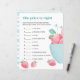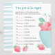 Sheet of baby shower game paper featuring cute strawberries in a cup in watercolor sketch style.