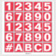 Sheet of Numbers in Red and White Stickers