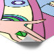Shelby is a lovely lady from the 1930s, wearing a simple hat, pulled down over one eye, and a colourful dress and jacket with matching jewellery.