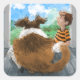 This adorable art of a boy and his dog relaxing on the porch comes from the picture book Sheldon the Sheltie's Tasty Adventure written by Dave Orinski and illustrated by Traci Van Wagoner. This sunny summer scene shares the exuberance of a boy and his dog's friendship and their relaxing calm after a fun adventure tasting the treats in the garden and orchards. Perfect for dog lovers of all ages.