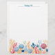 Colourful line drawings of different seashells and corals make a cute border across the bottom of this letterhead stationery.  Perfect for anyone who loves the beach and the ocean!  Could be used for casual correspondence, a marine-themed newsletter, a nautical invitation, or even a seafood menu.