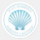 Shell Beach Blue Nautical Wedding Just Married Classic Round Sticker