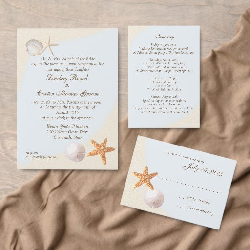 Starfish, sand dollar and sea shell beach theme return address label to compliment our shell beach destination wedding invitations.