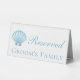 Designate special seating with this elegant "Reserved for Groom’s Family" sign, featuring a soft blue seashell in calming turquoise tones. Perfect for beach weddings, romantic summer ceremonies, or seaside receptions, this nautical-inspired design adds a polished coastal touch to your event. The refined shell artwork complements ocean and elegant wedding decor, helping create a thoughtful and cohesive atmosphere for your guests.