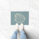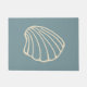 A large seashell decorates this dusty blue doormat. The design is from original art.
