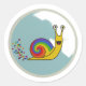 Take a page from this happy little snail's book and embrace the joy of slow living! This whimsical animated sticker features a cute snail with a colourful shell, leaving a trail behind it, symbolising the delightful journey of life. Perfect for water bottles, laptops, notebooks, and anywhere you want to add a touch of whimsy and a reminder to slow down and savour the moment. This sticker comes in a classic round design with a light-coloured background for a versatile and eye-catching addition to your sticker collection.