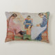 The cushion is small to medium sized. It can be washed. It is well constructed. The material used is pleasant and feels decent quality. It has a very slight plush feel which is good. It is well labelled and its care clearly stated. Theres nothing not to like about it. All in all a good item. The deduction of one star overall is due to long delays in delivery to the UK. It's not clear if this was due to Zazzle or somewhere else in the chain as I did not receive status updates of dispatch or progress. I cannot comment anymore on that other than to say that was our experience but it may not be the same for you. The printing was surprisingly close to what we were expecting. Its an art piece and on material so its hard to assess the precision of printing but it seems close to the original. The soft lines are reproductions of the original. The colour is a fair reflection of the painting. This was printed in the US and it looks like US quality. No issues.