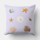 Shells, sea stars, & pearl on light periwinkle Throw Pillow.