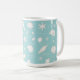 Adorn your table with coastal charm using this stunning coffee cup, featuring a playful pattern of seashells, starfish, and fun beach-inspired text. The ivory white pattern, on your choice of background colours (shown here on teal blue), evoke a relaxed summer, beach house vibe. Whether you're decorating a beach house table or bringing seaside serenity to your everyday decor, this design is sure to add warmth and character.. Search ID918 to see other colour options for this design.