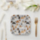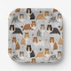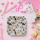 Cute Shetland Sheepdog dogs sit and stand and rollover with sable, tri-colour, merle and white coats with scattered dog bones and pawprints pattern.