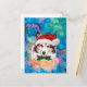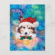 Sheltie Breed Dog Christmas feature a watercolor of a Sheltie with a red Santa's Hat, a red Christmas Collar, and a galaxy watercolor.