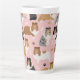 Cute Shetland Sheepdog dogs sit and stand and rollover with sable, tri-color, merle and white coats with scattered dog bones and pawprints pattern.