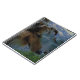 Partially transparent photo of my sheltie overlooking a lake and beautiful scenery.