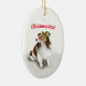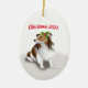 A Sable Sheltie with a green holly on her head. You can personalise with your dog's name or write "Merry Christmas." Designed and Illustrated by ©Jacqueline Schneider