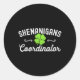 Shenanigans Coordinator Happy St Patricks Day Teac Classic Round Sticker