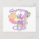 Shenyang of Liaoning province on a colourful map of China includes the Chinese symbols for 'Shenyang' and its location is marked on the map with a heart and flag. A beautiful, unique China adoption gift! Customisable! Designed by Hendrika of RedThreadMaps.com
