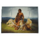 This design features a painting by the Polish-Danish artist Elisabeth Jerichau-Baumann (1819–1881). It depicts a stone-age shepherd in a rural landscape. The shepherd is leaning on a wooden walking stick and his sheep dog is sitting beside him. The shepherd is wearing a loin cloth. Behind the man and dog are a group of lambs and sheep.